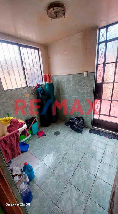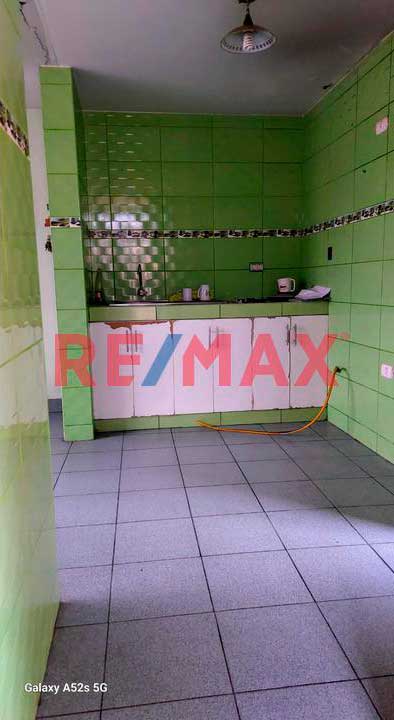 Cocina amplia con mueble bajo y un ambiente para el comedor de diario. La puerta falsa o secundaria da a la lavanderia, cuenta con gas Calidda